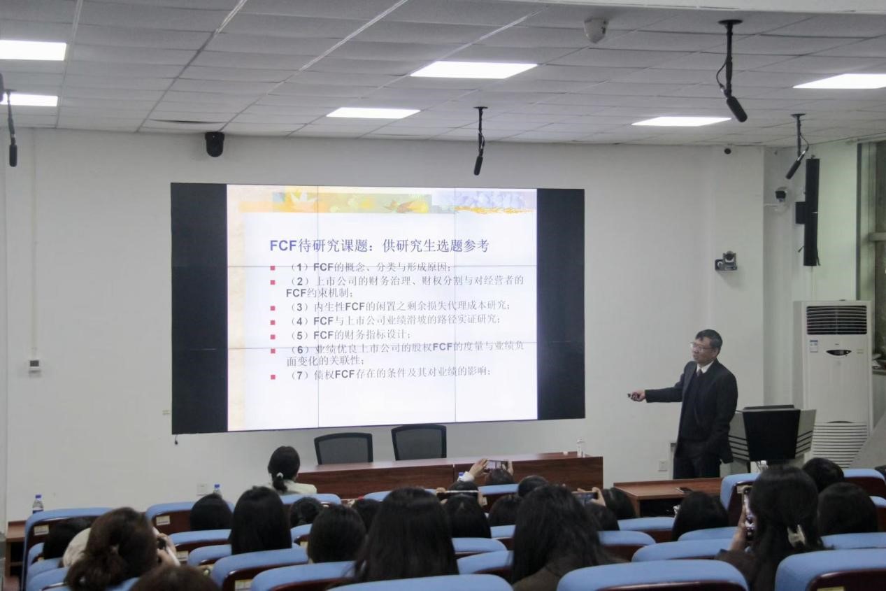 王金凤在主持讲座时表示,干胜道教授的讲座内容扎实、视角独特,既有理论高度,又贴近中国现实,为在场师生带来了一场深刻的财务思想启迪。本次讲座不仅拓展了师生的学术视野,也进一步增强了我院与国内高水平院校的学术交流,对提升研究生科研创新能力、推动学院科研高质量发展具有积极意义。