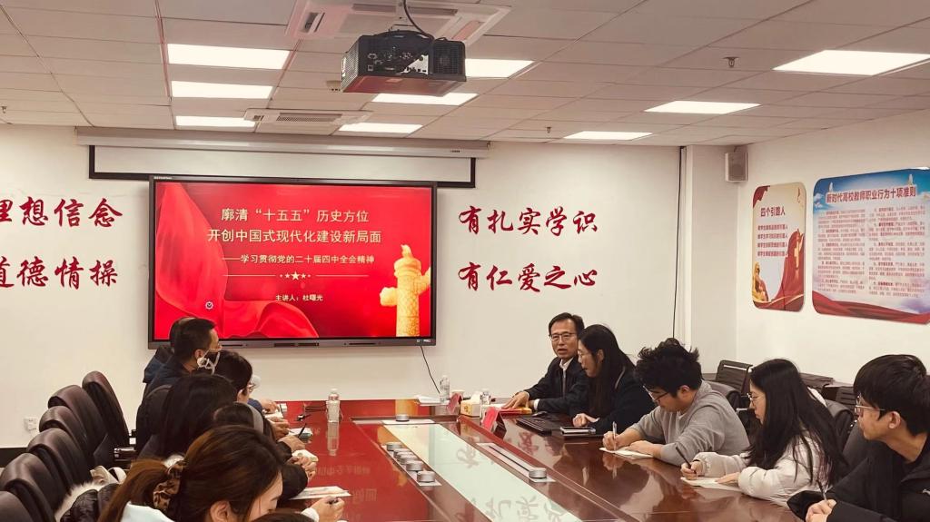 12月11日,校党委委员、副校长杜曙光在61001为联系班级及党支部讲授了主题为“廓清‘十五五’历史方位,开创中国式现代化建设新局面”的思政课。