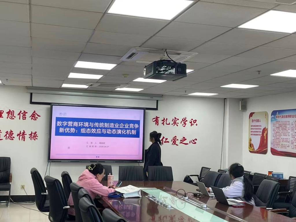 2024级研究生端荣雪和葛朝晖分别就其研究成果进行了汇报。端荣雪同学的论文《分行业信息披露与资本跨区域流动——基于企业异地投资的研究》,该研究以 A 股上市公司为样本,实证发现数字经济发展能显著促进企业创新,其通过提升企业数字化转型水平、优化信息环境、缓解融资约束等路径发挥作用,为数字经济赋能企业创新提供了理论与实践依据;葛朝晖同学则汇报了《数字营商环境与传统制造业企业竞争新优势:组态效应与动态演化机制》聚焦数字营商环境对传统制造业构建竞争新优势的复杂作用机制,基于组态视角与动态演化逻辑,探究多要素协同驱动企业转型的路径。